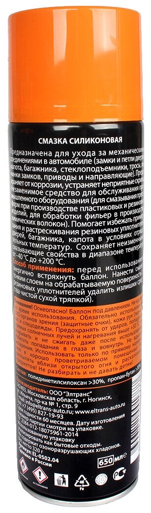 смазка силиконовая аэрозоль (650мл) элтранс el-0502.04