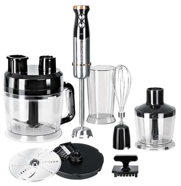| Плюсы: | Отличный мощный блендер с кучей насадок. Пюрирует все за считанные секунды. |