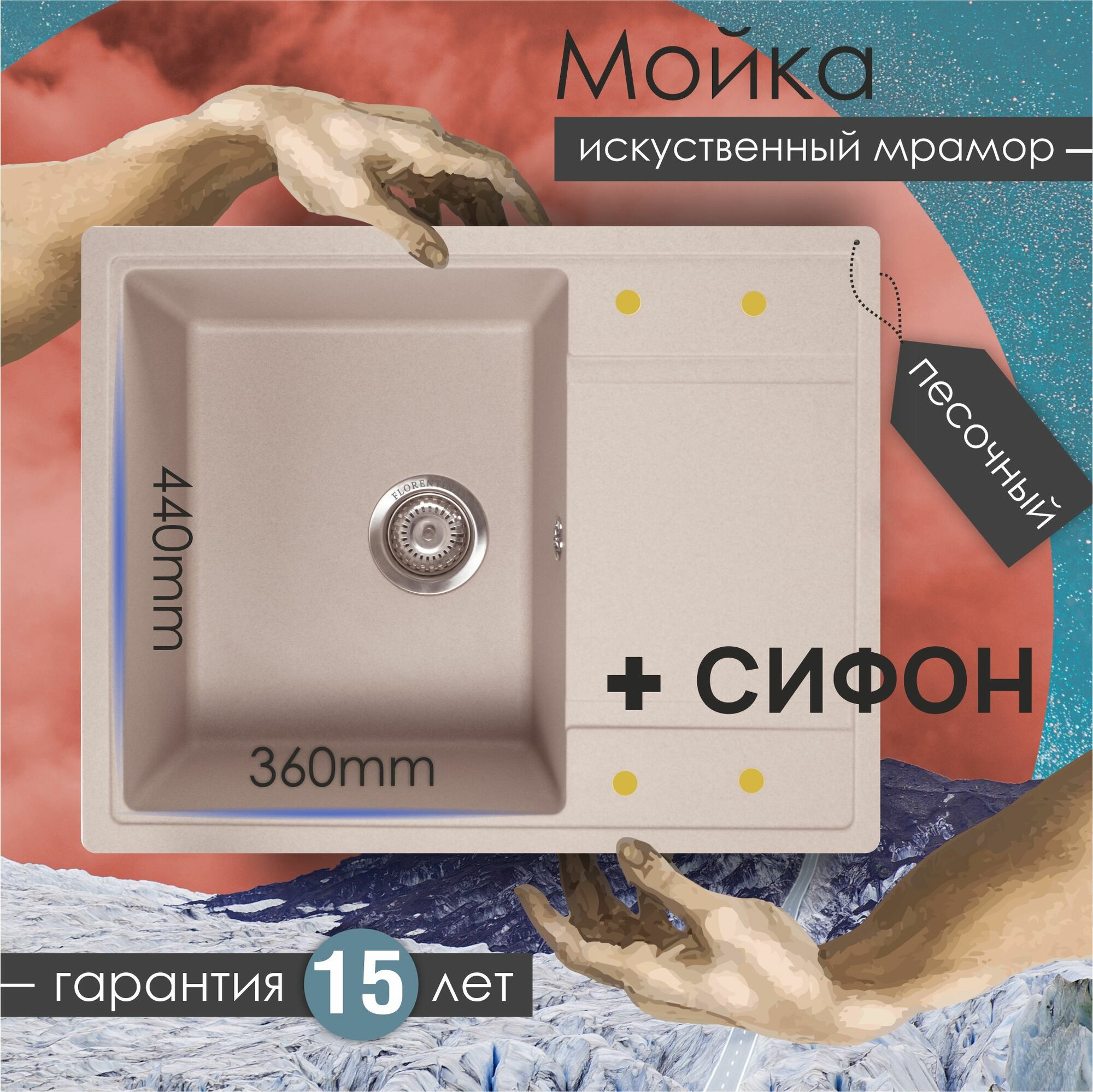 Купить Мойка кухонная прямоугольная Флорентина Липси 650 Песочная (20.125.C0650.107)