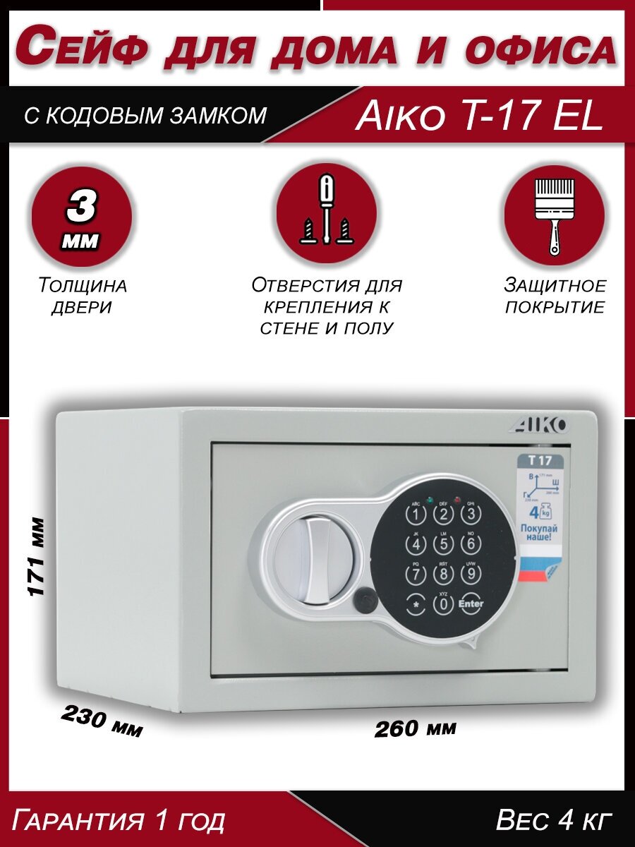 Сейф AIKO Т-17 EL (ВхШхГ) 171x260x230мм Вес 4кг Металл 2,8 мм