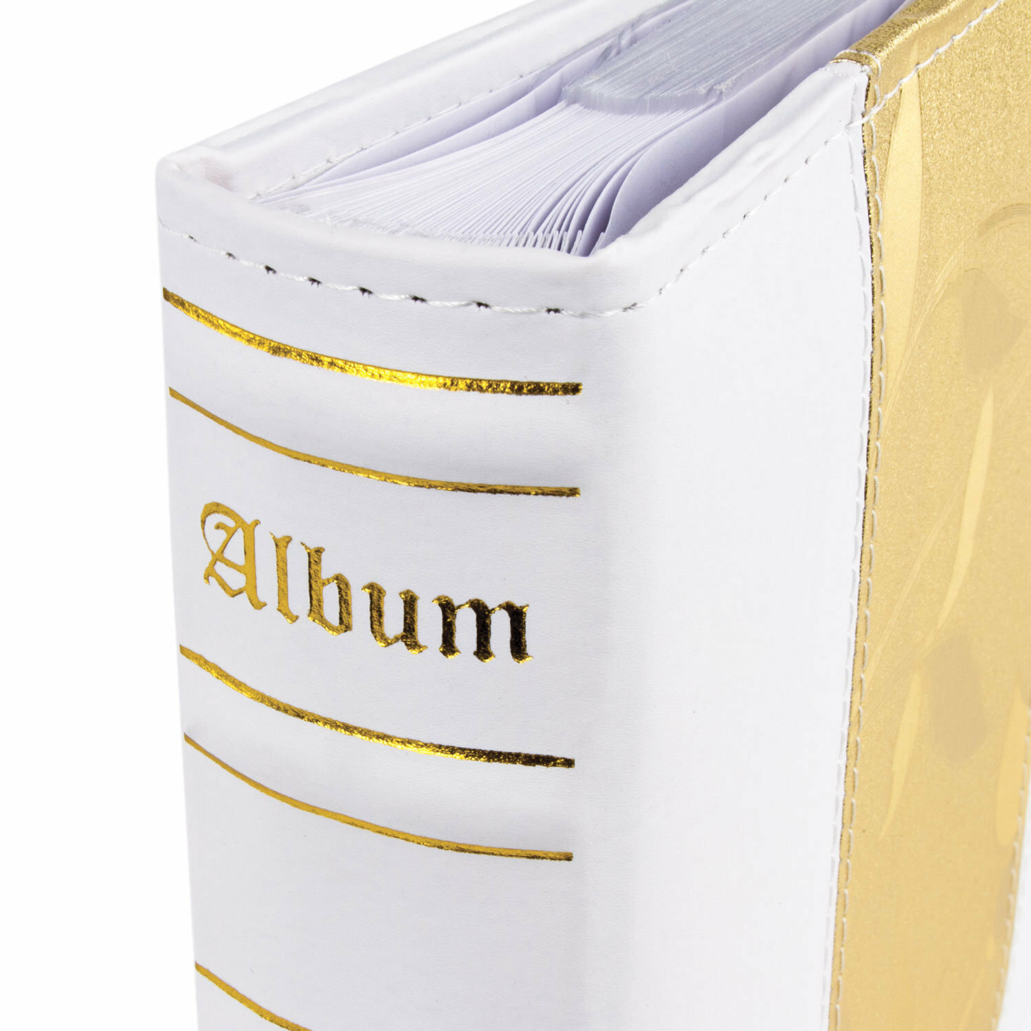 Купить Фотоальбом BRAUBERG на 200 фото 10*15 см, под кожу, бумажные страницы, бокс, бело-золотистый, 391112