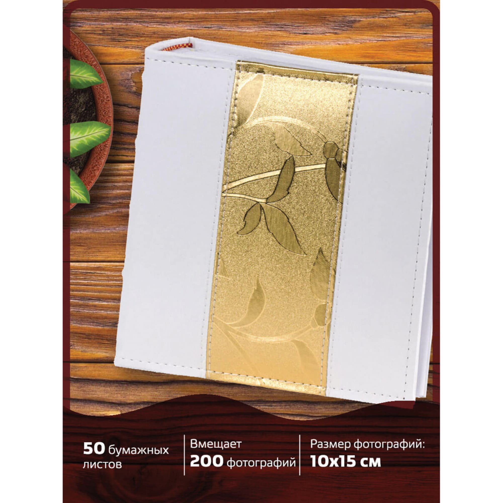 Фотоальбом BRAUBERG на 200 фото 10х15 см, под кожу, бумажные страницы, бокс, бело-золотистый, 391112, 391112
