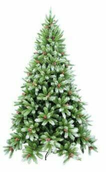 Сосна искусственная "Айс тиффани" (ICE TIFFANY) с шишками и ягодами, (хвоя - леска+PVC), зелёная заснеженная, BEATREES
