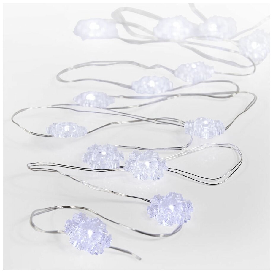 Электрогирлянда Neon-night Снежинки, на батарейках, 20 LED ламп, 2 м, белая