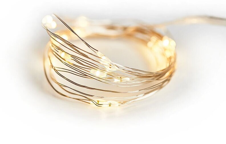 Купить Гирлянда Neon-Night Роса 2м, питание от батареек, постоянный режим свечения, теплый белый цвет, IP20