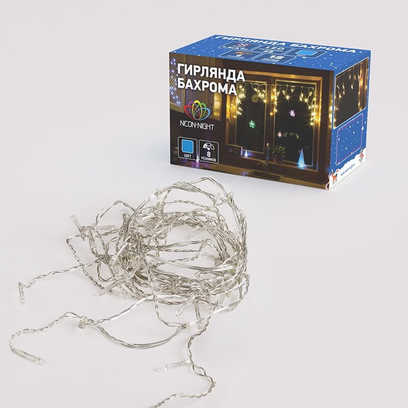 Светодиодная гирлянда "Бахрома" Neon-night 3х0.8 м, 8 режимов, 200 белых светодиодов, прозрачный провод