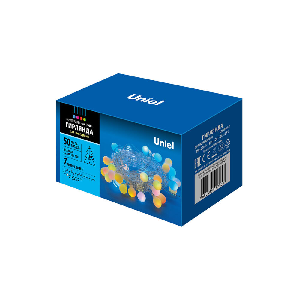 Гирлянды Мультишарики UNIEL «Радуга», 50 светодиодов, 7 м, RGB, IP20, провод прозрачный