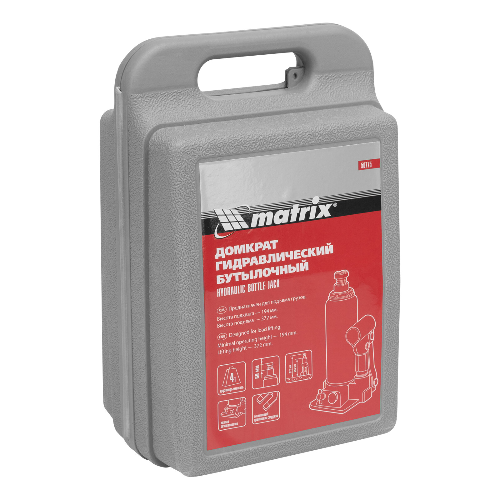 Купить Домкрат гидравлический бутылочный, 4 т, h подъема 194-372 мм, в пластиковом кейсе Matrix