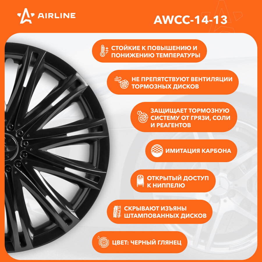 Awcc-14-13_колпаки Колесные! 14' 'Скай', Черный Глянец, Компл. 2 Шт. AIRLINE арт. AWCC-14-13