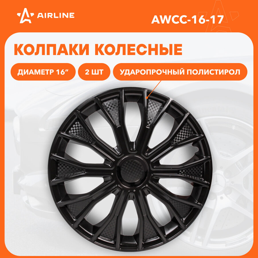 Awcc-16-17 Колпаки Колесные 16" "Волтек", Черный Глянец, Карбон, Компл. 2 Шт. AIRLINE арт. AWCC-16-17