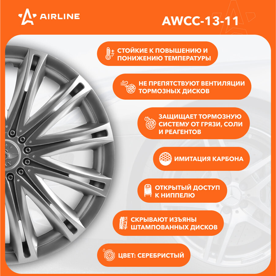 AIRLINE AWCC-13-11 Колпаки колесные 13" "Скай", серебристый, компл. 2 шт.