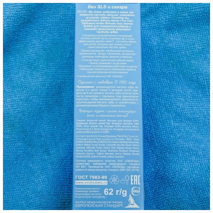 Ниже Вы можете прочитать отзывы на Свобода (Svoboda) Детская зубная паста Тик-так Bubble gum 2+ 62 гр, ознакомится с подробными характеристиками, посмотреть интересные обзоры и фотографии на Свобода (Svoboda) Детская зубная паста Тик-так Bubble gum 2+ 62 гр.
