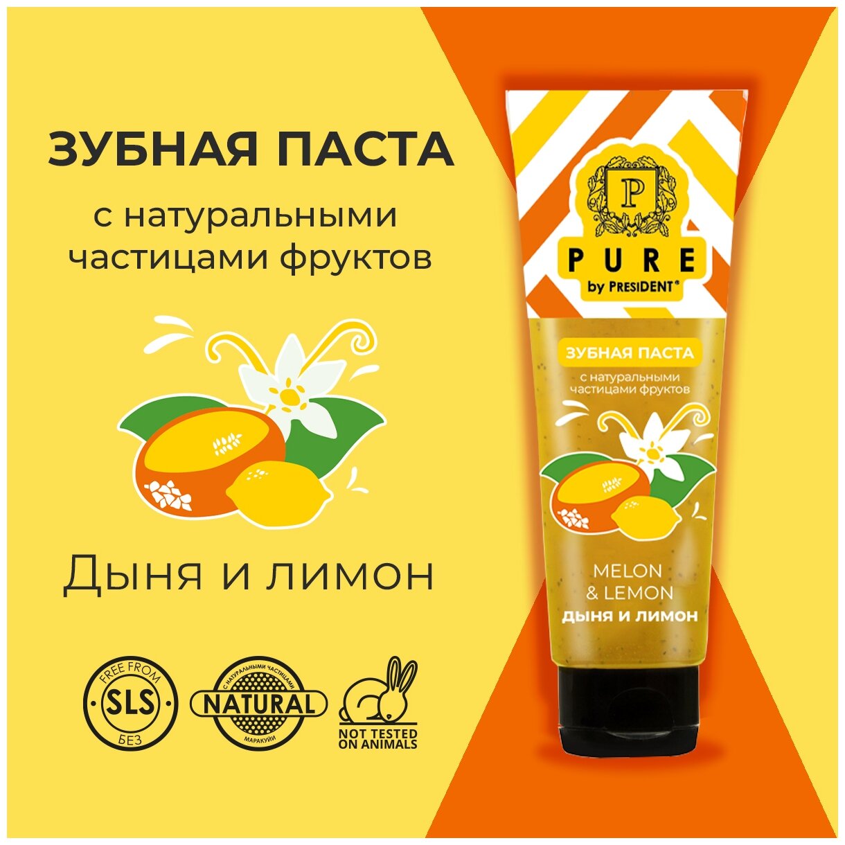 PRESIDENT Зубная паста Pure by President дыня и лимон, 100 г
