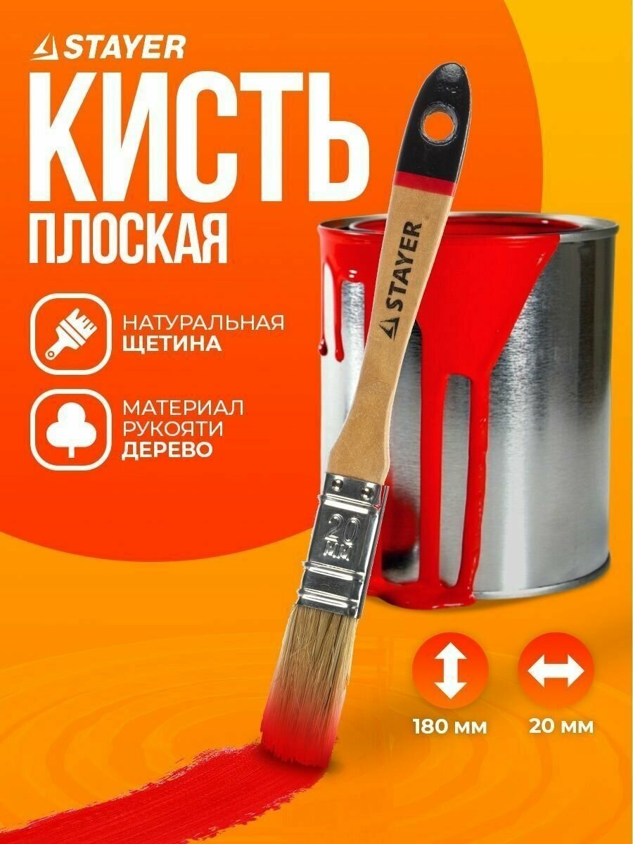 STAYER UNIVERSAL - EURO, 20 мм, 3/4″, светлая натуральная щетина, деревянная ручка, все виды ЛКМ, плоская кисть (0102-020)
