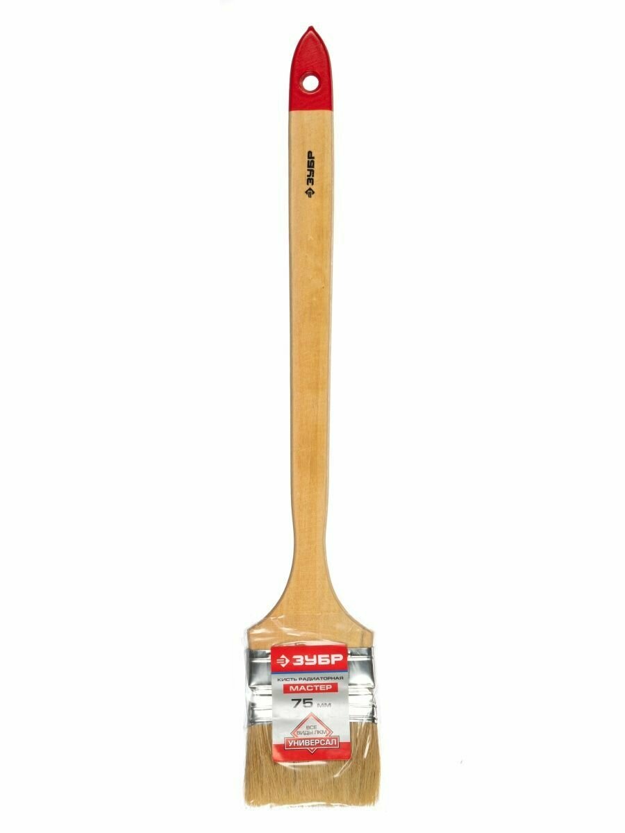 Кисть радиаторная угловая ЗУБР ″универсал-мастер″, светлая натуральная щетина, деревянная ручка, 75м (01041-075)