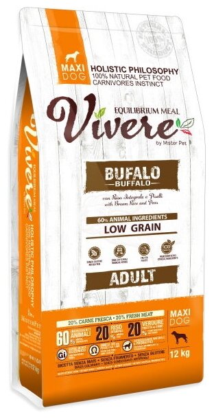 Сухой корм VIVERE LOW GRAIN ADULT MAXI BUFFALO низкозерновой для взрослых собак крупных пород с буйволом (12 кг)