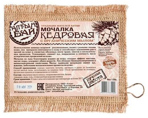 Мочалка Кедровая с органическим мылом, АлтынБай, 130 г