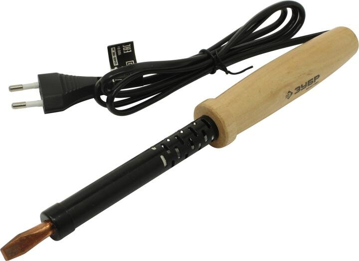 Электропаяльник с деревянной рукояткой, серия мастер Зубр 55405-100