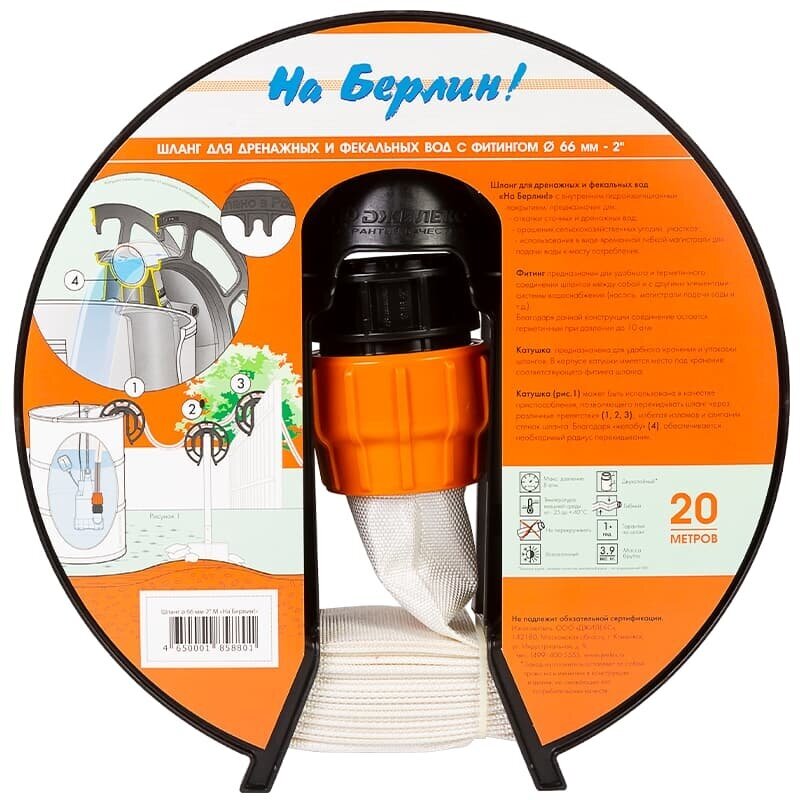 Шланг 66 для дренажных вод 20м, с фитингом 2" "на берлин"