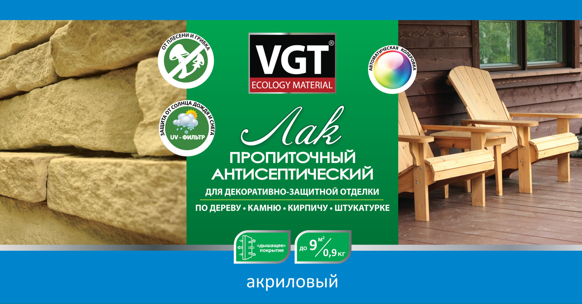 Лак акриловый пропиточный антисептический для дерева и камня VGT (9кг) калужница