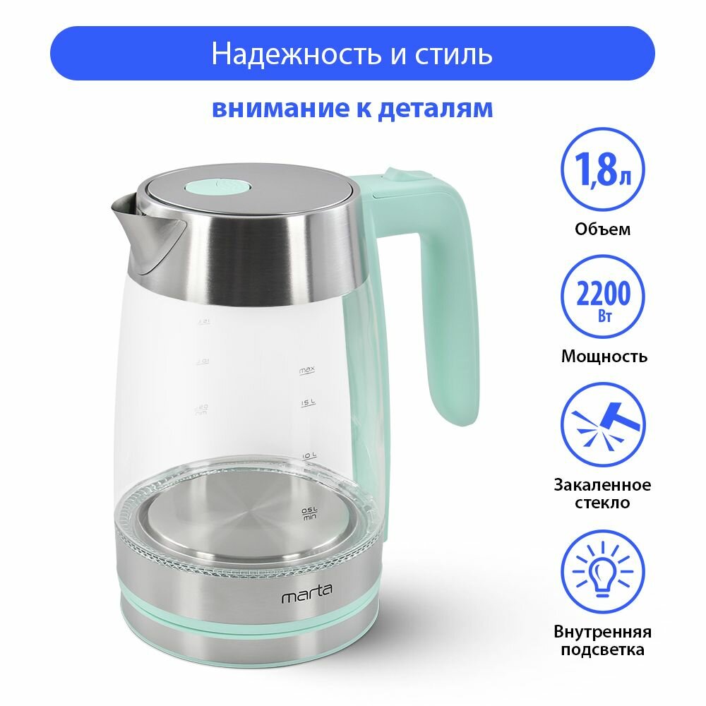 Купить MARTA MT-4553 ментол чайник стеклянный