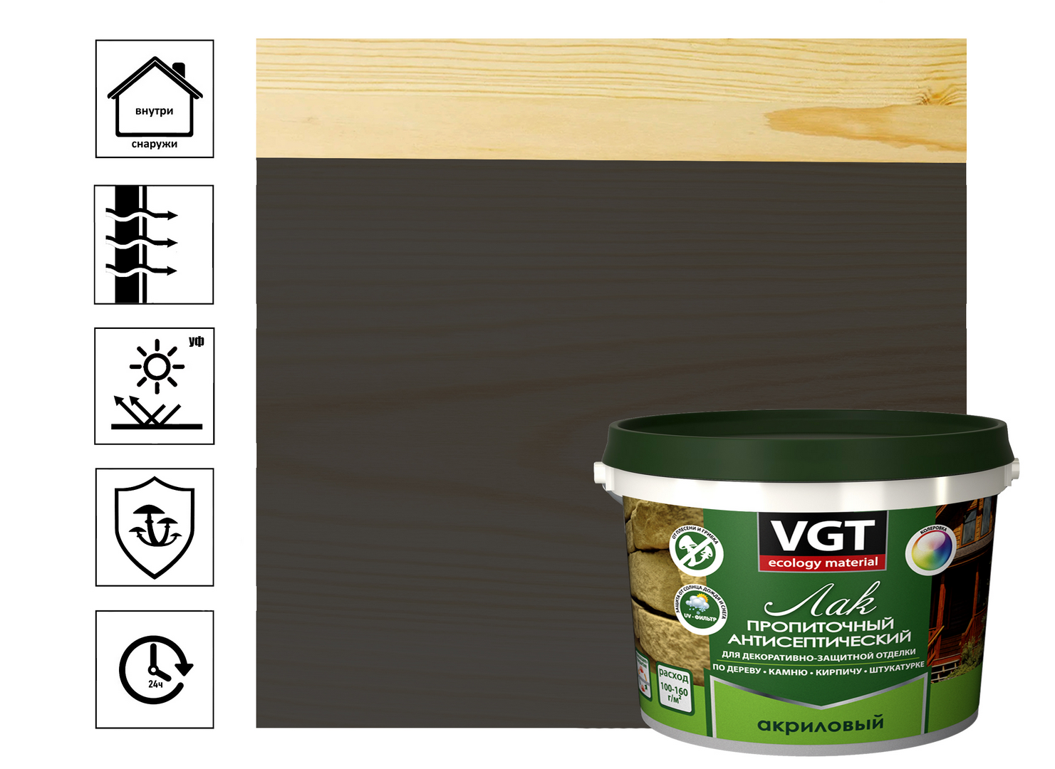 Лак VGT акриловый пропиточный с антисептиком, венге, 2,2 кг