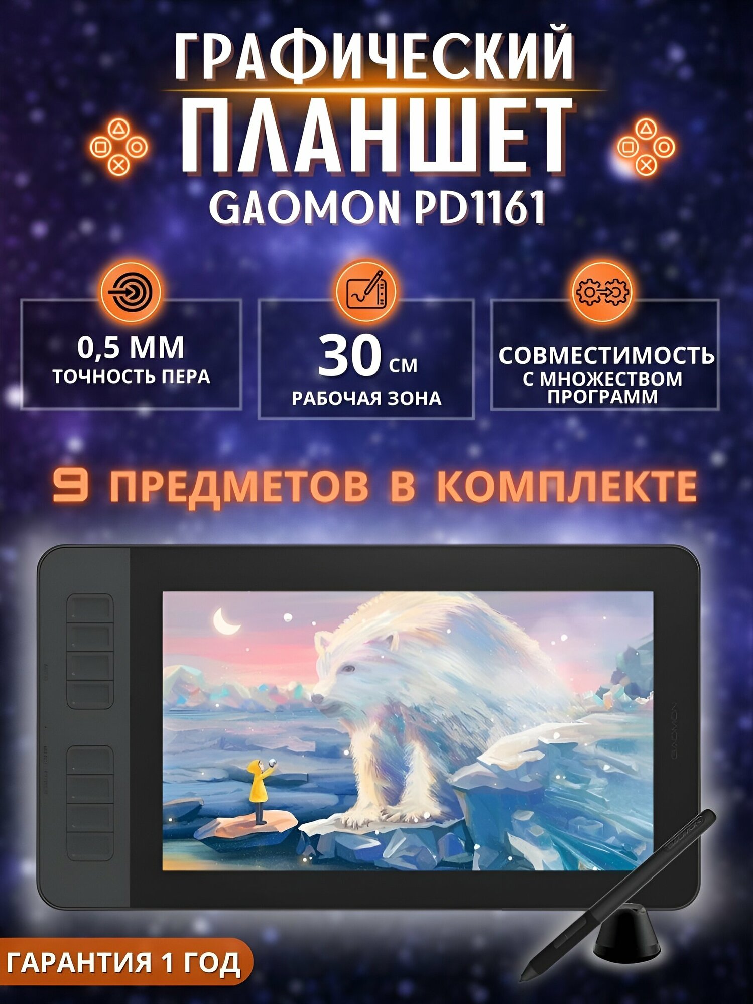 Планшет графический GAOMON PD1161 для рисования и учебы/ Интерактивный дисплей