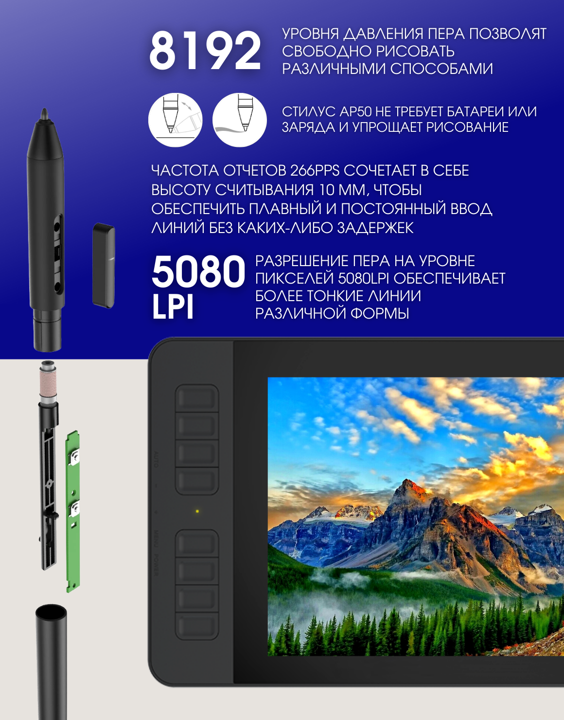 | Минусы: | большое расстояние от стилуса к экрану