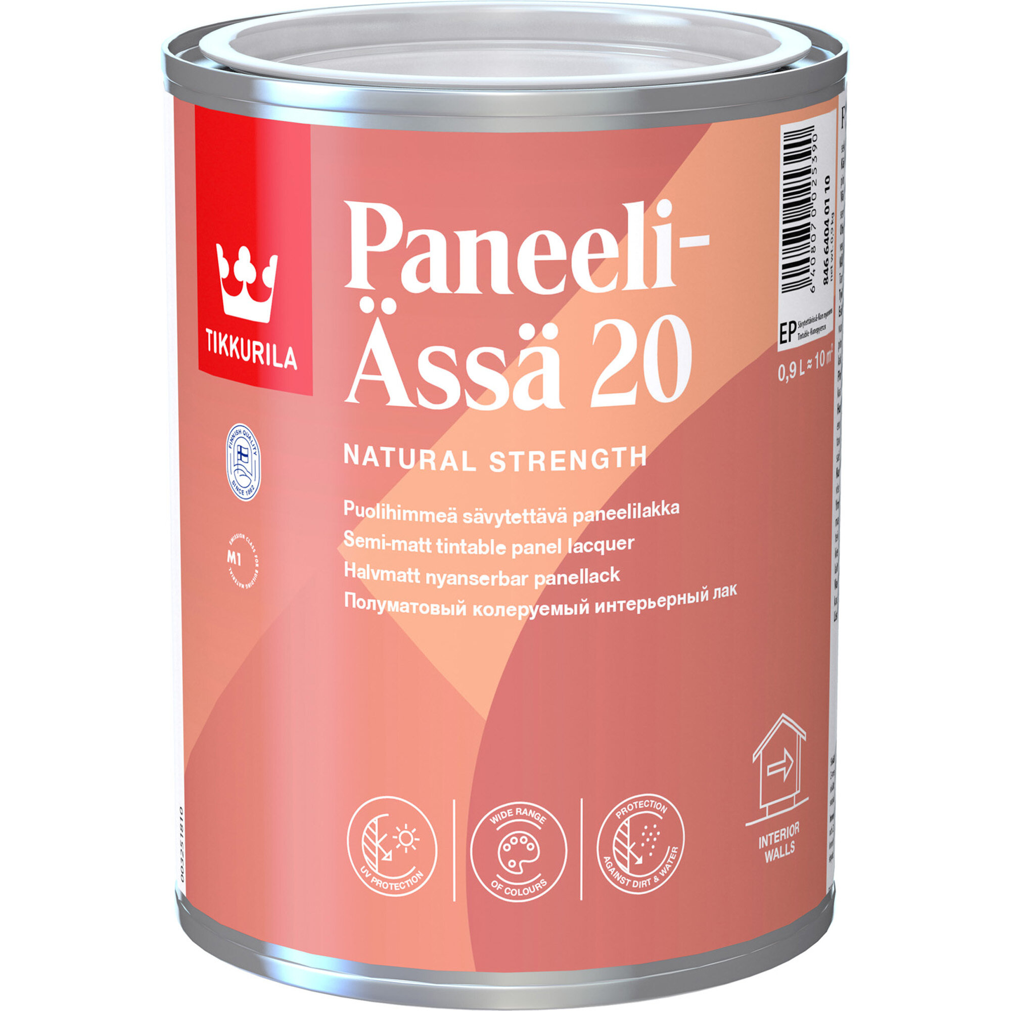 Tikkurila Paneeli-Ässä 20 Интерьерный полуматовый лак на водной основе для дерева, панелей, бетона и кирпича, 0,9 л