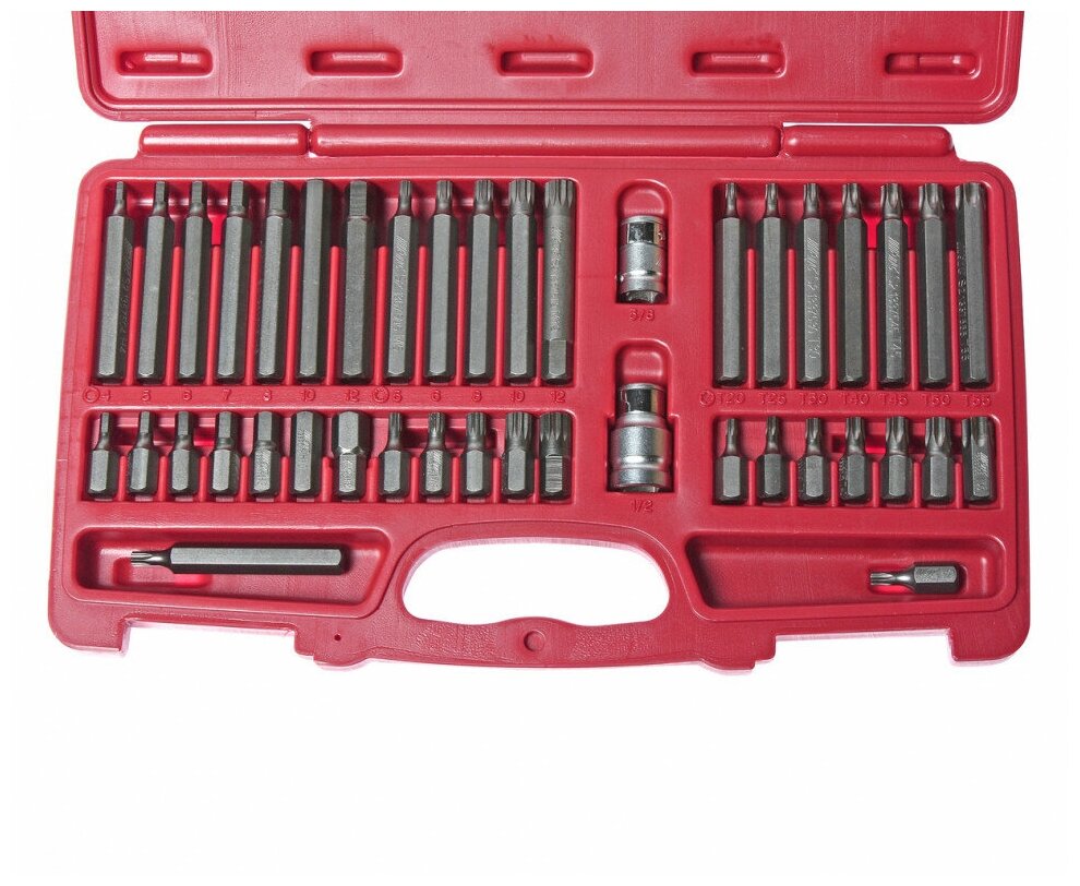 JTC JTC-3933 Набор бит 1/2" 3/8" HEX, TORX, SPLINE 6-ти гранных 2 держателя 42 предмета в кейсе JTC