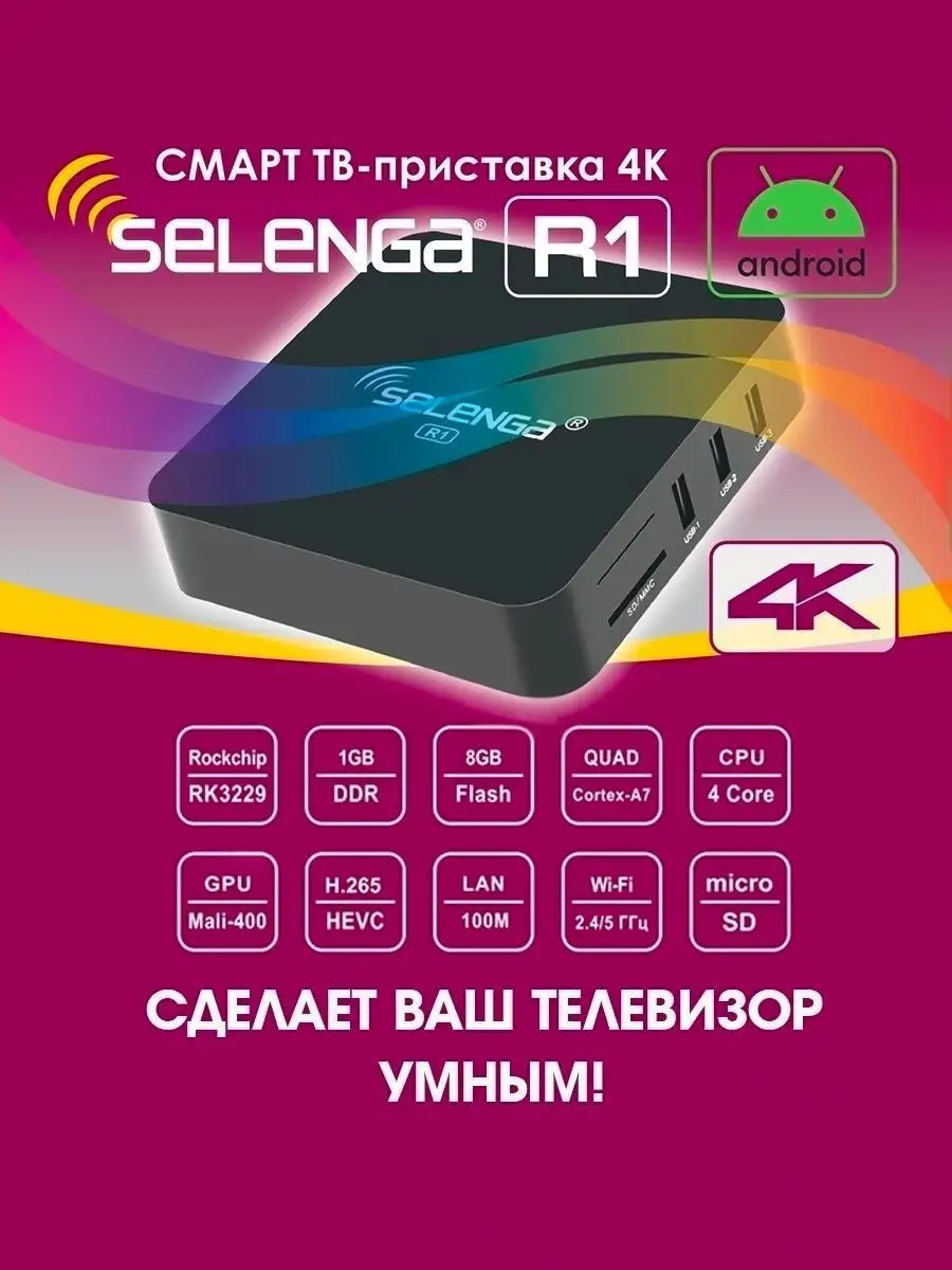 Смарт ТВ-приставка 4К SELENGA R1. RockChip RK3229 Quard Cortex-A7 (шт.)