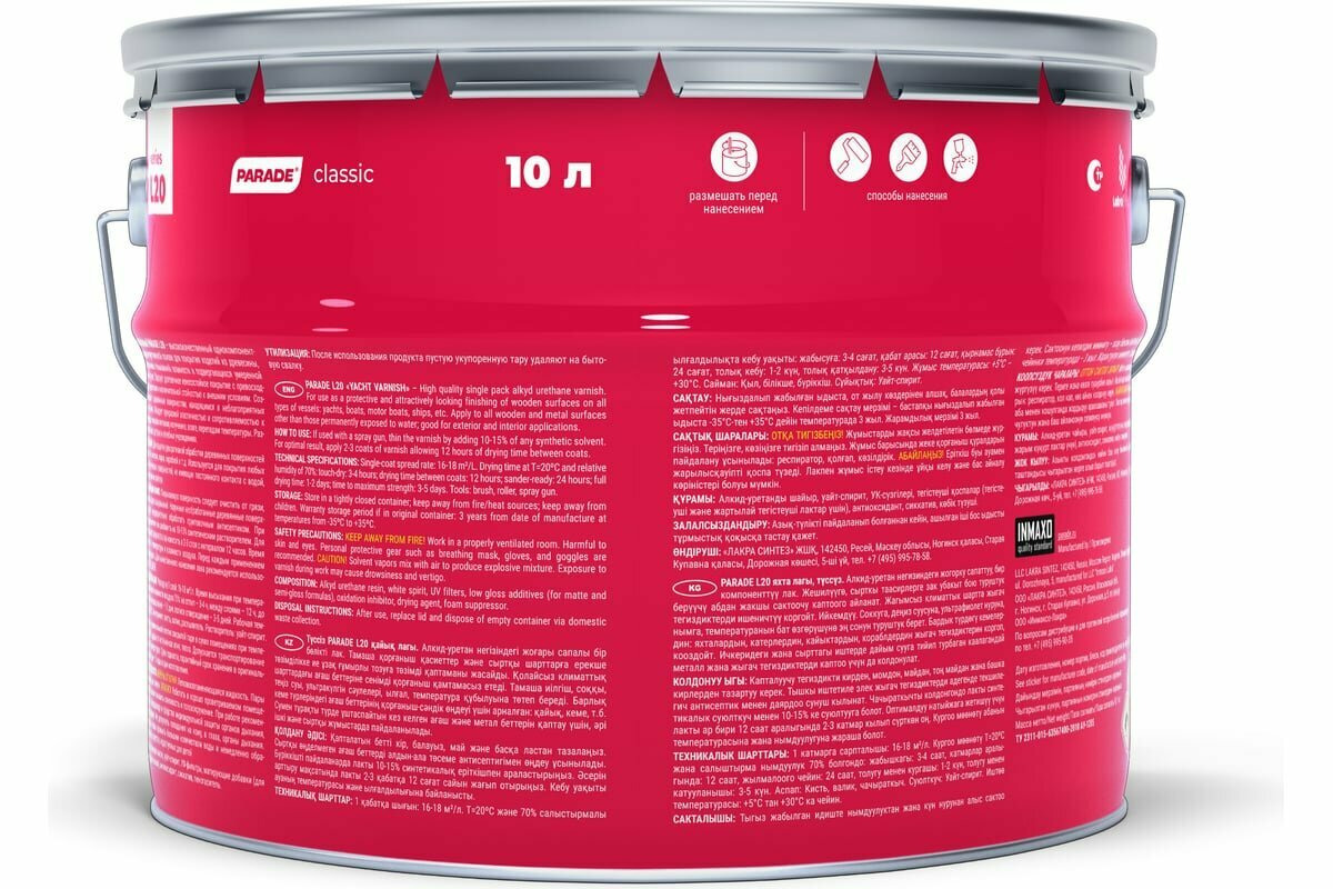 Купить Лак алкидно-уретановый Parade L20 яхтный матовый 10 л