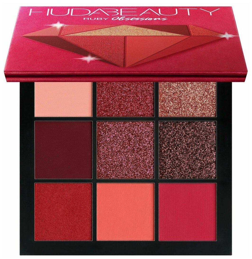 Huda Beauty Палетка теней Obsessions ruby интересное: