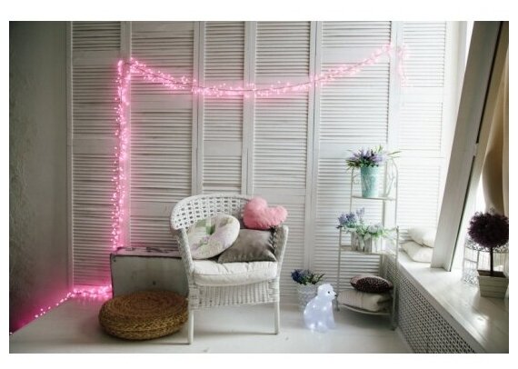 Гирлянда светодиодная 3м 288LED розовая, провод прозрачный ''Мишура'' 303-607 Неон-Найт