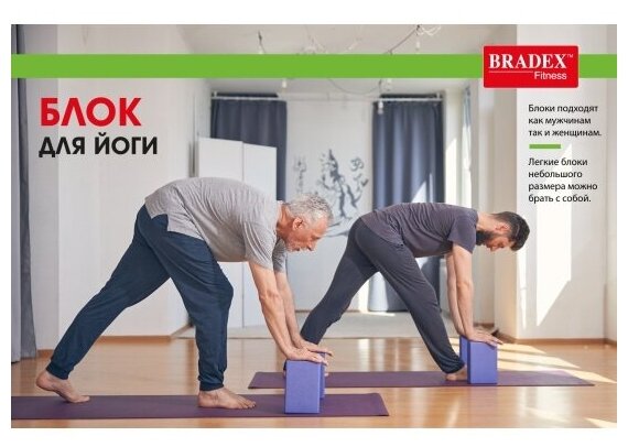 Блок для йоги BRADEX, кирпич для фитнеса и гимнастики, опорный кубик для растяжки, 23х15х7,5 см, фиолетовый
