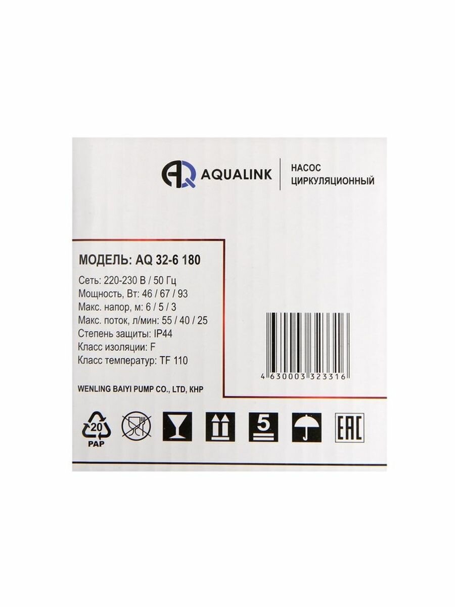 Насос циркуляционный электрический AQ 32-6 180 интересное:
