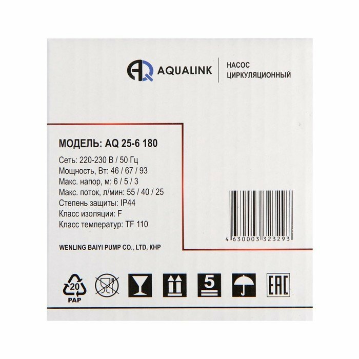Купить Насос циркуляционный электрический AQ 25-6 180