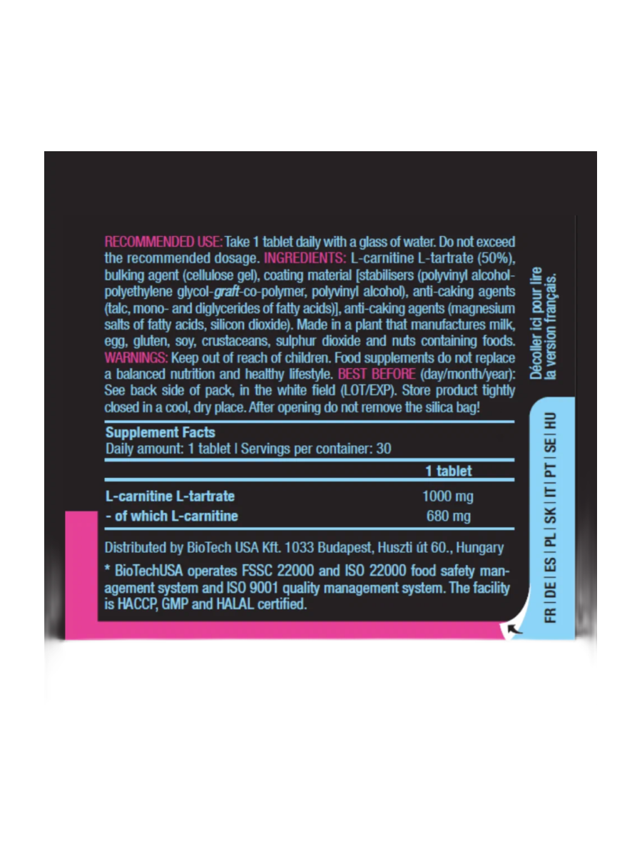 Купить BioTechUSA L-Carnitine 1000 мг. 30 таб.