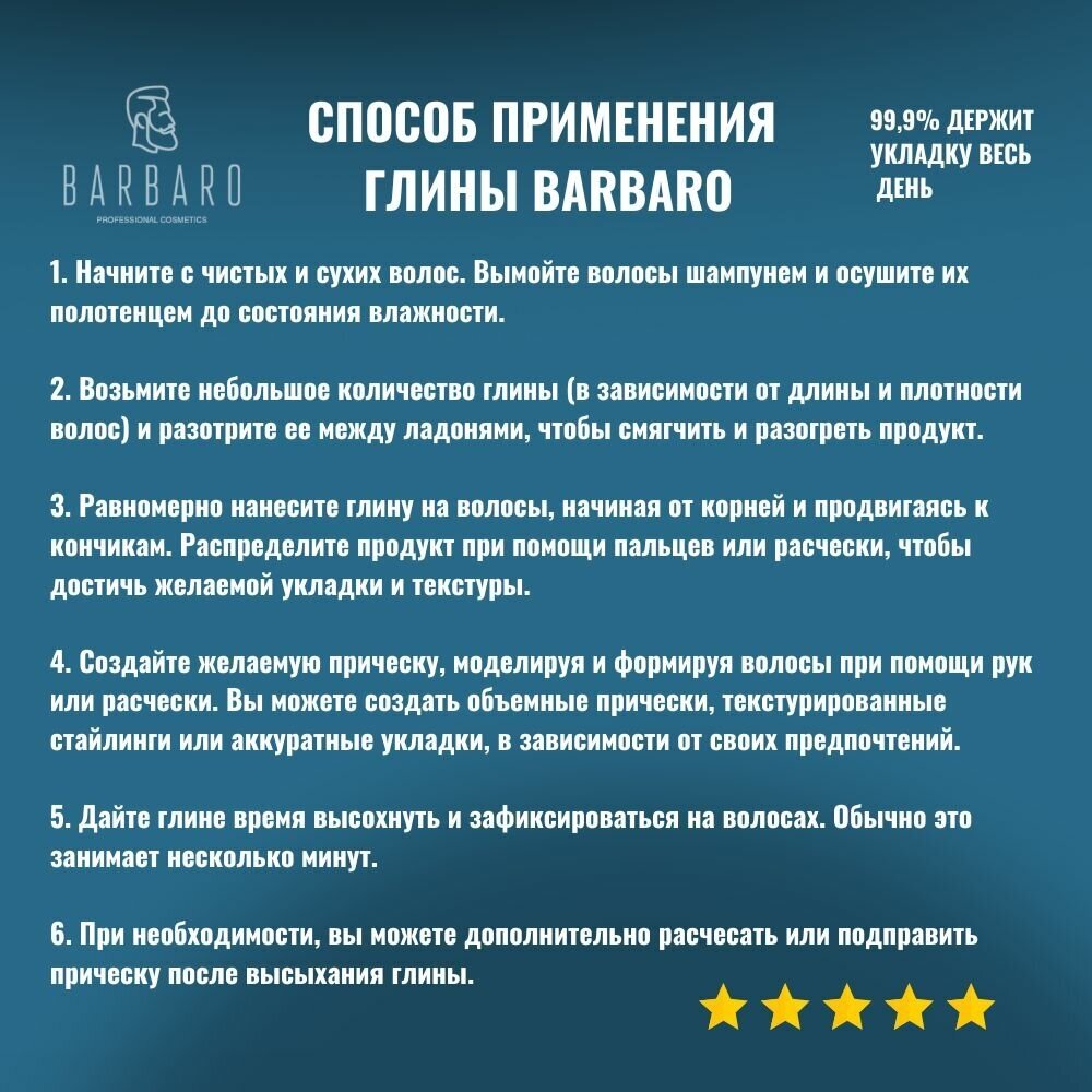 Barbaro Матовая глина для укладки волос, сильная фиксация, 60 г интересное: