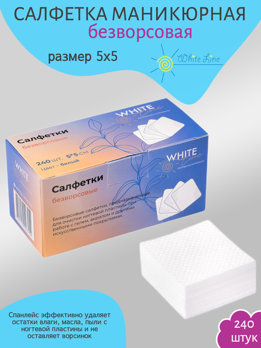 Салфетки маникюрные для искусственных покрытий 240шт White Line в коробке интересное: