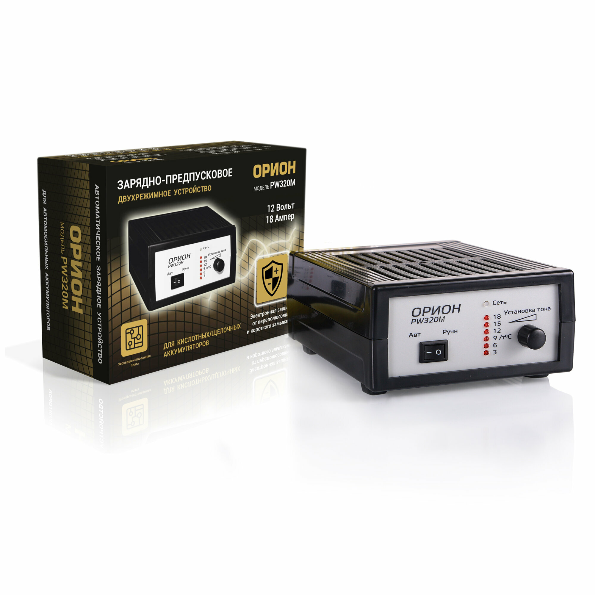 Нпп-орион PW320M Устройство зарядное для АКБ импульсное, плавная регулировка тока - 0.8 - 18 А, 0.9 кг, 210 х 155 х 85 мм, модернизированное