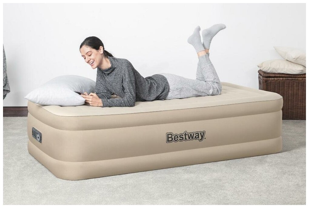 Кровать надувная Twin, 191 x 97 x 46 см, со встроенным электронасосом, 69048 Bestway Bestway 5309873 .