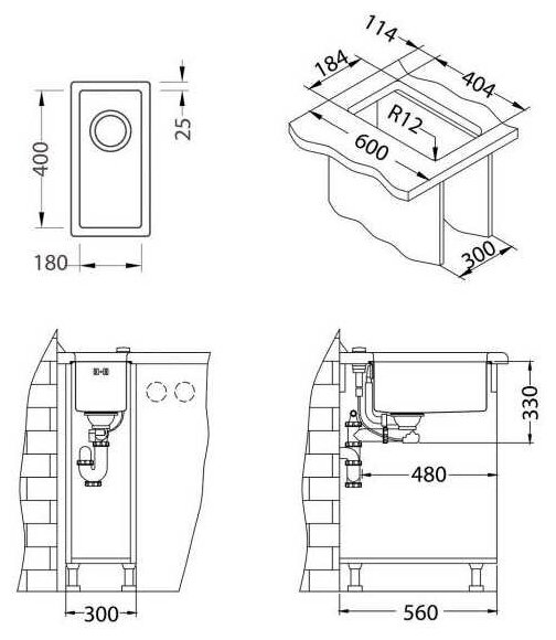 Мойка ALVEUS QUADRIX 10 BRS-90 230 X 450 X 175 в комплекте с сифоном
