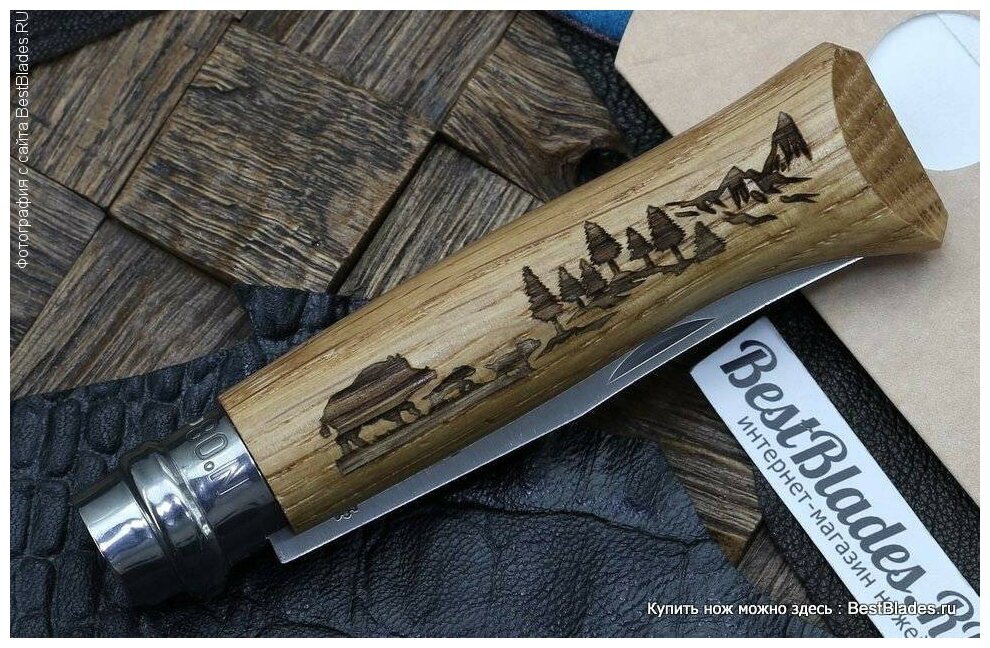 Нож Opinel №8, нержавеющая сталь, рукоять дуб, гравировка кабан