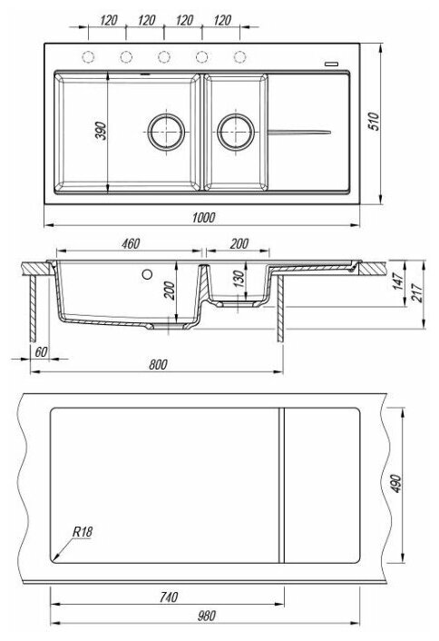 Мойка кухонная Florentina накладная россана 1000x510x217 Черный