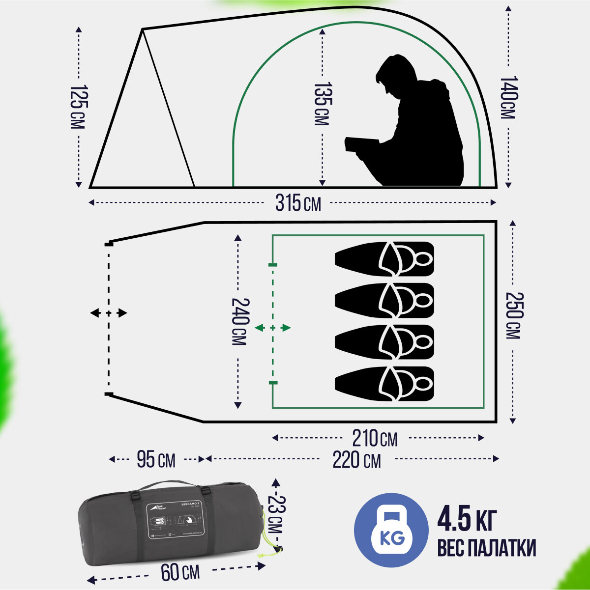 Палатка четырехместная TREK PLANET Bergamo 4, цвет: зеленый