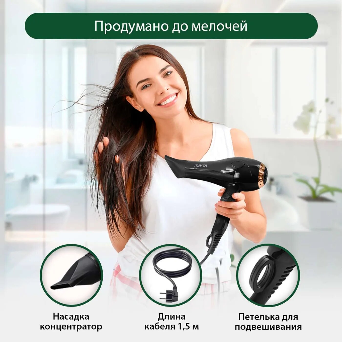 Купить Фен MARTA MT-1491 туманная яшма