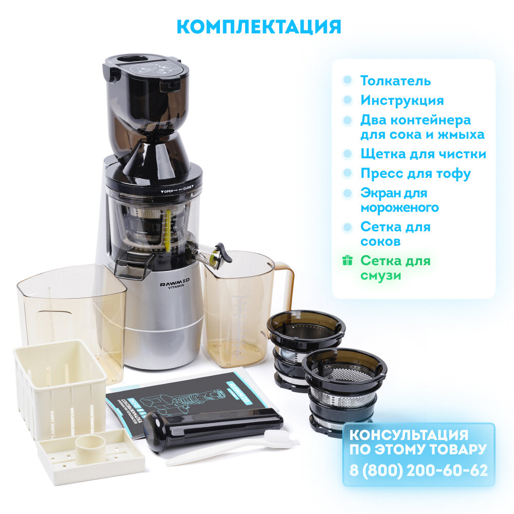 Шнековая соковыжималка RAWMID Vitamin RVJ-02, серебряный