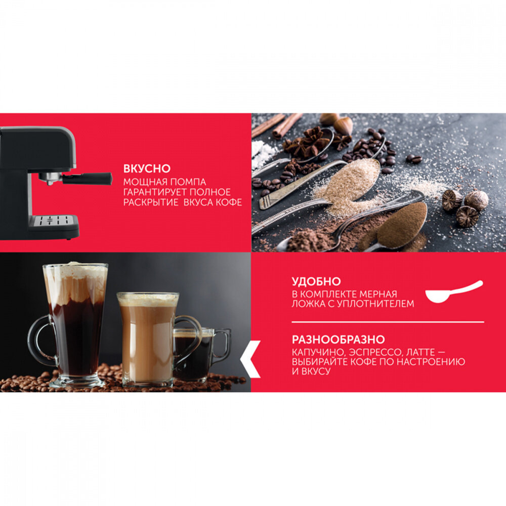 Именно эту выбрала за то, что она разные виды кофе варит, эспрессо, латте, капучино, на любой вкус. Ложка с уплотнителем шла в комплекте, удобно отмерять нужное количество кофе. Вкус получается как в профессиональной кофе машине, а места много не занимает. Купила полгода назад, не могу нарадоваться.