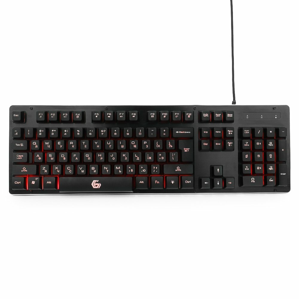 Клавиатура игровая Gembird KB-G400L, USB, черный, металлический корпус, 104 клавиши, подсветка 3 цвета, FN клавиши, кабель тканевый 1.75 м